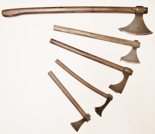 Her er der forskellige typer økser fra Middelalder og Vikingetid.