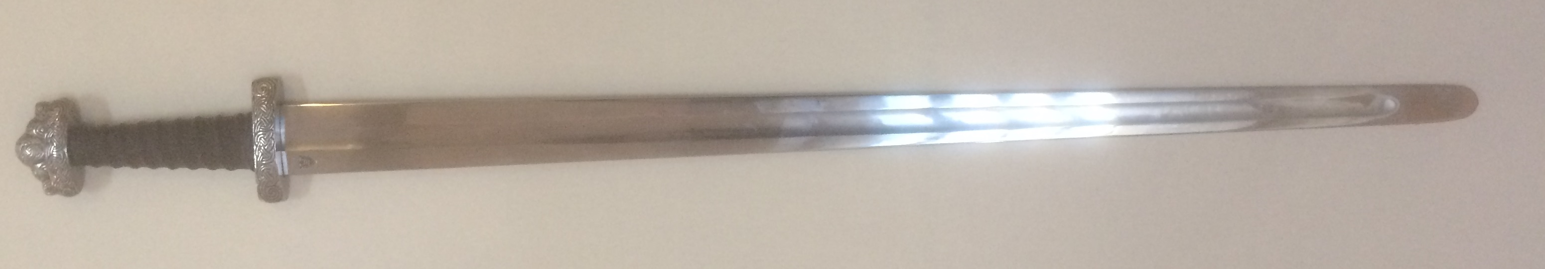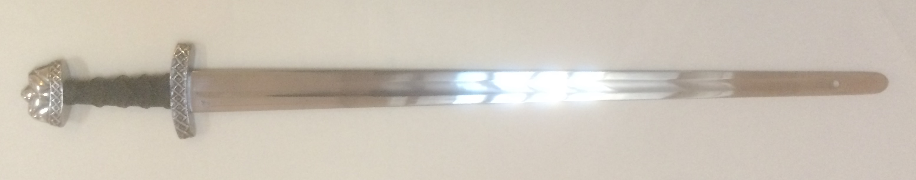Sværdskede og sværdbælte af kernelæder medfølger.
