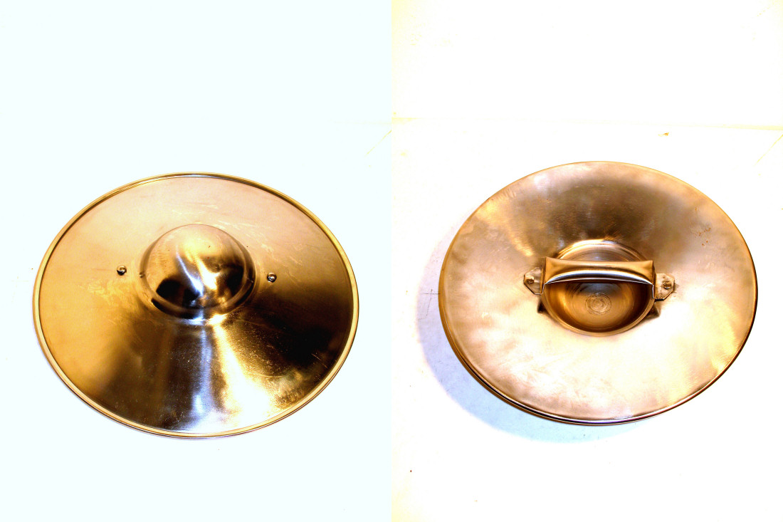 2mm poleret, lethærdet stål, tyk ombukket kant.