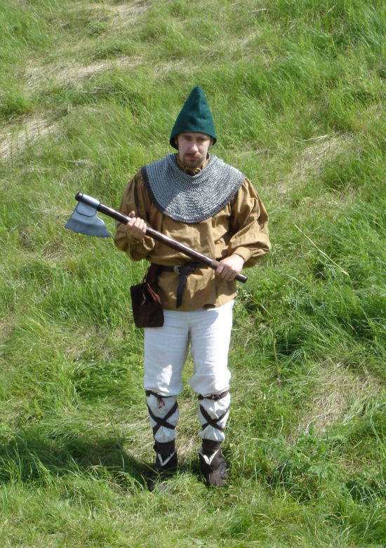 Bevæbningen er det daglige arbejdsredskab - en langskaftet økse.