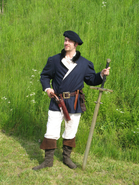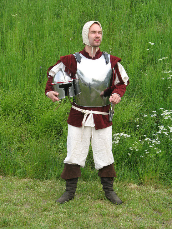 Rustningen er let og består af en slagkofte, pladeknæ og kedelhat.