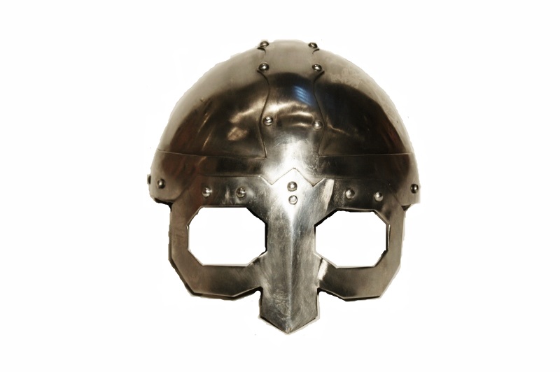 Rigtig vikingehjelm med ansigtsbeskyttende 'brille'.
