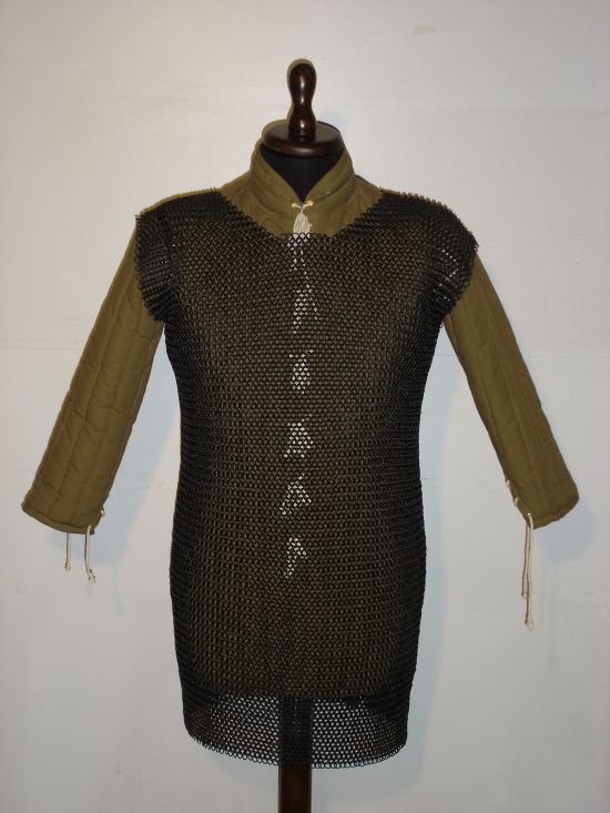 Junior Brynjevest i 8mm ringe, 1½mm tråd. Lethærdet stål med sortbrændt overflade.(autentisk rustbeskyttet) Længde: 100cm. Omkreds: 100cm. Vægt: 8kg.